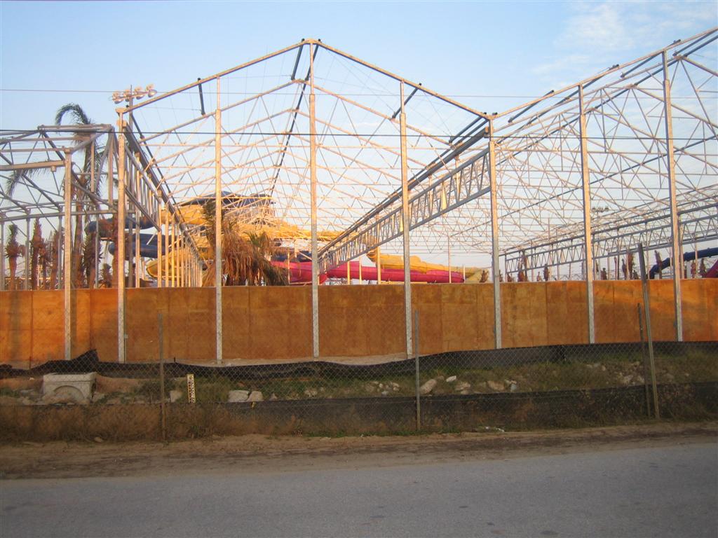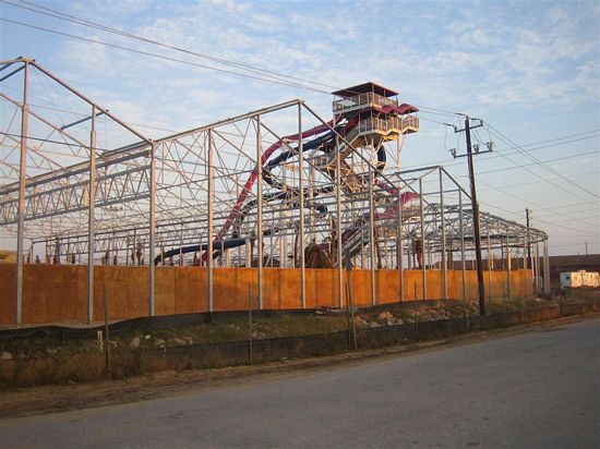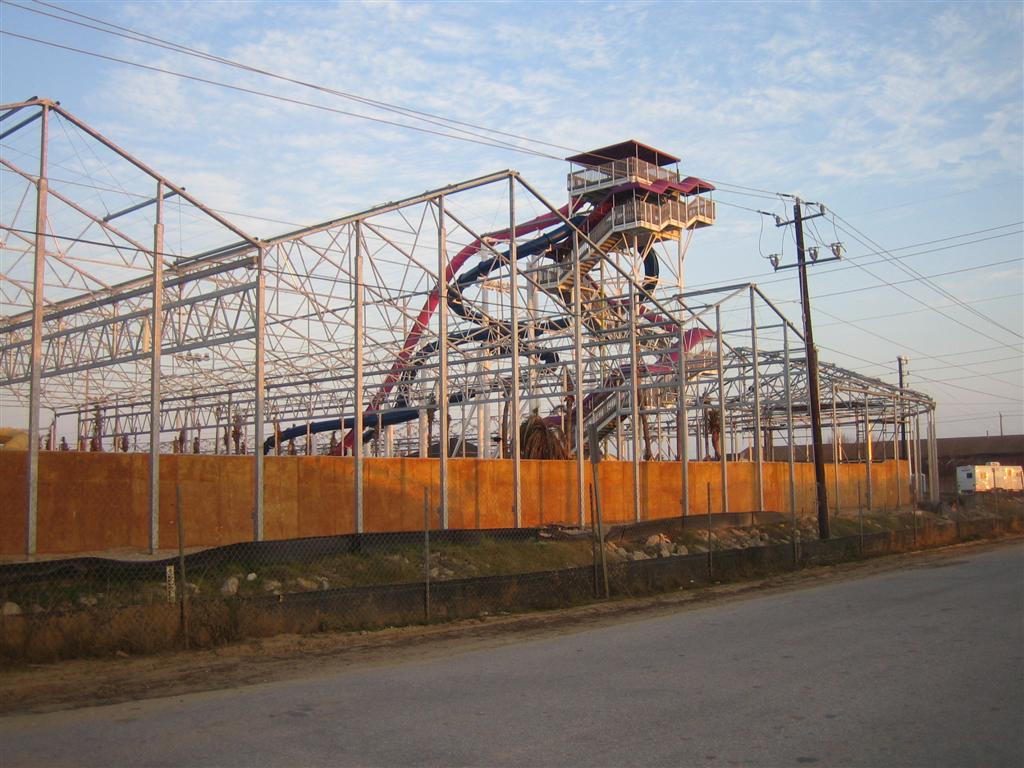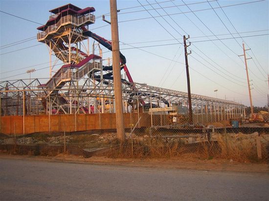 Schlitterbahn Galveston is currently under construction in Galveston, TX near Moody Gardens. It was supposed to open before Christmas, but it has since been delayed and now has an indefinite opening date. The following pictures were taken on December 31, 2005. Click on the pictures for larger versions.